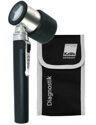 Медицинское изделие с регистрационным удостоверением Минздрава РФ (номер уточняйте при заказе). Профессиональный дерматоскоп немецкой фирмы KaWe для визуального исследования кожного покрова. Обеспечивает 10-кратное увеличение структуры кожи, освещение обследуемого участка вакуумной лампой (2,5 В) с интенсивностью 7 000 люкс сравнимо с микроскопией падающего света (эпилюминесцентная микроскопия). Металлическая головка с резьбовым креплением к рукоятке, большое контактное стекло диаметром 25 мм со шкалой. Подходит для оснащения дерматологических кабинетов, косметологических клиник, онкологических центров, медицинских учреждений, проводящих диагностику новообразований кожи.