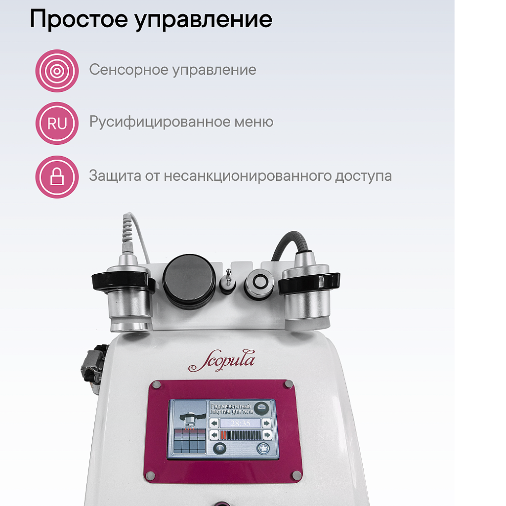 Комплекс физиотерапевтический Scopula CaviPro VRMF II для ультразвуковой кавитации для тела, вакуум совмещенный с радиолифтингом для тела, радиолифтинг для лица, радиолифтинг для тела, микротоковое воздействие.