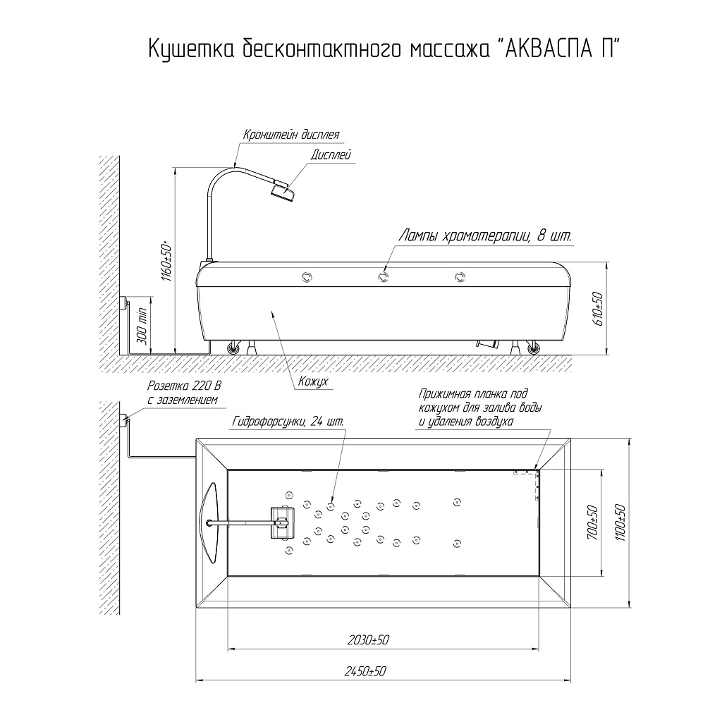 Евро - розетка мощностью до 3,5 КВт, 220 В, 16 А. Для ванны Акваспа необходимо заготовить 220-240 литров дистиллированной воды, залив единоразовый на срок до 1,5 -2х лет.
