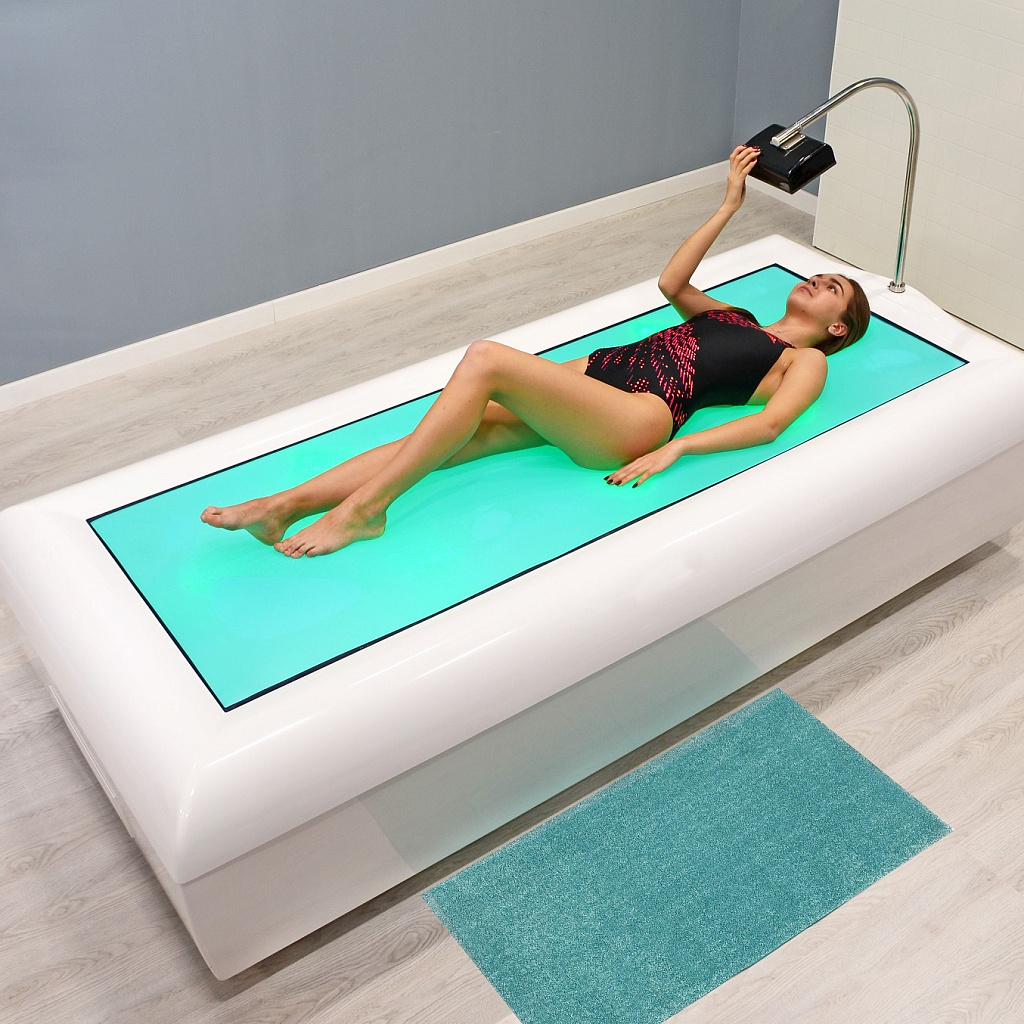 Пациент ложится на поверхность эластичной светопрозрачной мембраны, которая под его весом немного погружается в воду, обеспечивая полную анатомичность и воссоздание формы тела. Таким образом, он оказывается в состоянии «невесомости». Теплые струи воды через мембрану мягко массируют тело, усиливая релаксационный эффект. Продолжительность процедуры зависит от физического состояния пациента. В среднем, оптимальное время воздействия – 15-20 минут и рекомендуемая частота сеансов – 1-2 раза в неделю.